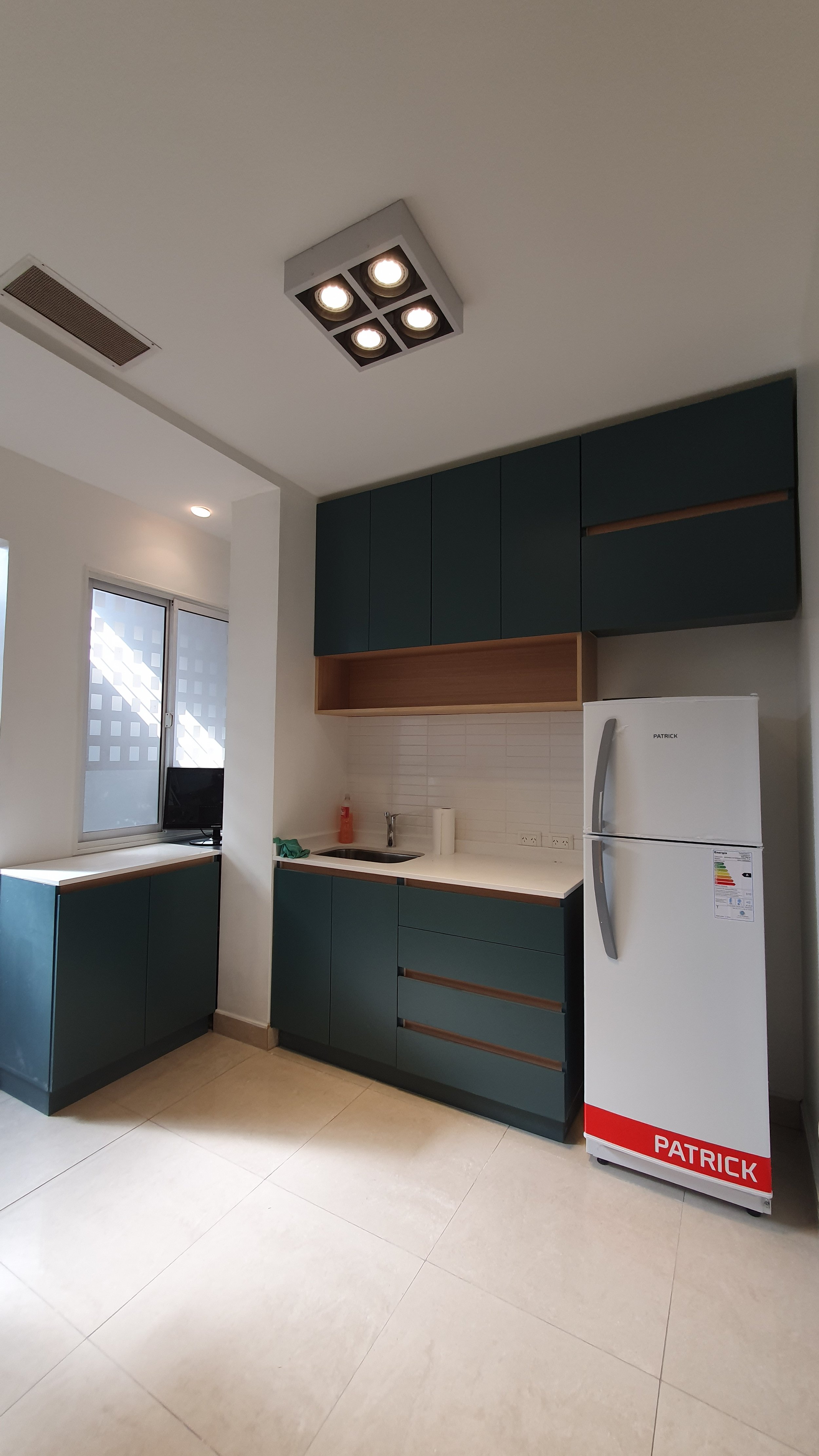 Proyecto, dirección y ejecución de obra para estudio jurídico. Se busco re-habitar un espacio sin utilidad , generando un nuevo sector de cocina, desayunador y almuerzo. Remodelación del baño completo. 28m2